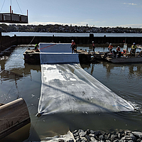 The pollutant barrier can be installed evenly and erosion-proof on land and under water.