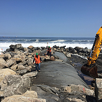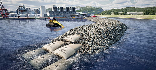 The large-format coastal protection tubes pack the sand in an erosion-proof manner in order to protect the coasts and shore.