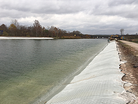 Incomat Standard enables the installation of a concrete seal both underwater and on steep slopes. Its integrated erosion protection function makes it the ideal solution for canal rehabilitation and basin lining projects, eliminating the need for additional protective layers or multi-layer system structures. The concrete mattress is also highly effective for providing bed protection in harbors.