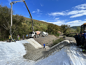 The geosynthetic concrete mattress is made of two high-strength fabric layers that are filled with fluid concrete on site. This process creates a stable, adaptable protective layer that conforms seamlessly to complex terrain—both above and below water.