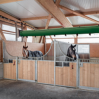 Using a 3D stable climate simulation, the cooling tubes are individually calculated and subsequently produced. The tubes can be expanded at any time with modern control technology, which makes automatic climate control and year-round use possible. You are welcome to make use of our on-site veterinary consultation to achieve maximum animal welfare!