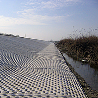 Over the years, geotextile filters have established themselves as a standard revetment solution. Specification of a suitable geosynthetic system paves the way for the quick and efficient construction of longlasting revetments. Geosynthetic products also lend themselves to use in remedial protective measures, e.g. scour fill at the toe of slopes or the stabilization of eroding cliffs. Geosynthetic container units are filled with locally sourced materials. Mineral filters or stone revetments can be replaced by geosynthetic products. This reduces the logistical effort and boosts cost-effectiveness.