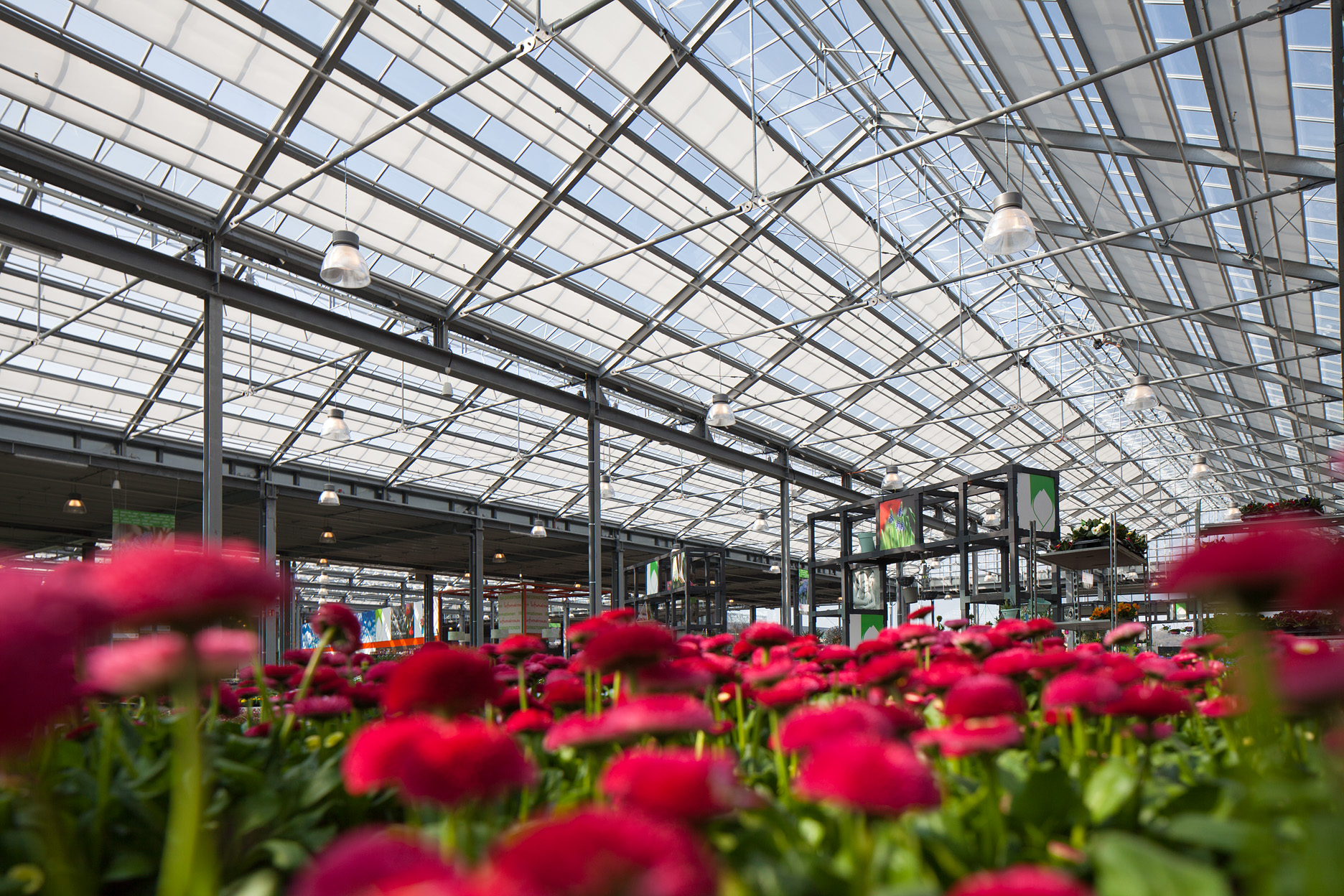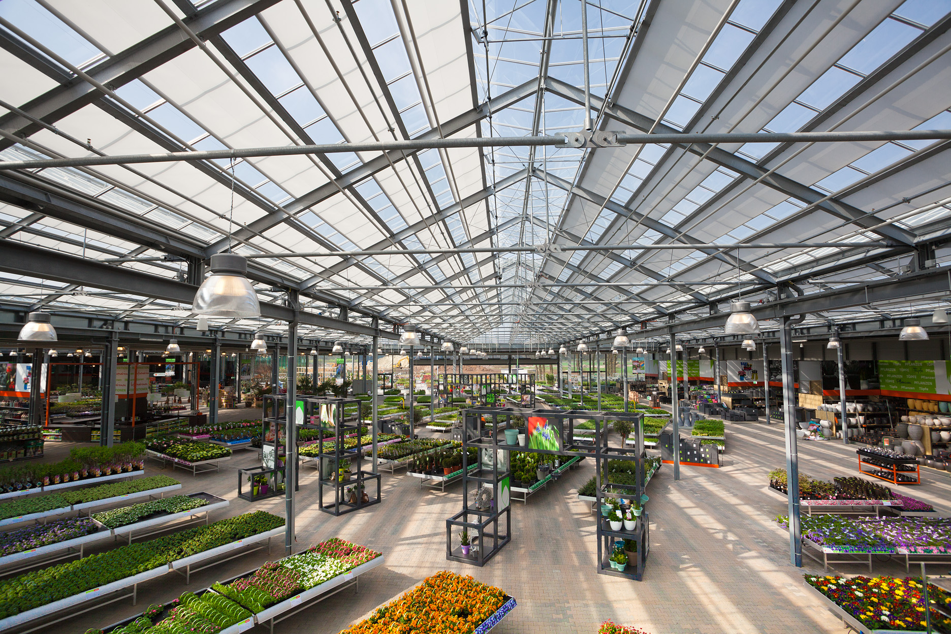 By selecting an appropriate colouration of the fabric various light transparencies are possible so that an optimum light distribution can be achieved. Furthermore, not only a positive influence on the energy savings is generated by the good climatic conditions inside the greenhouse, but also the emission of CO2 will be reduced. The superior flame protection corresponds to all legal requirements for greenhouses and garden centres.